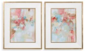 SET DE 2 CUADROS DECORATIVOS PINTADOS A MANO TONOS ROSAS CON DORADO