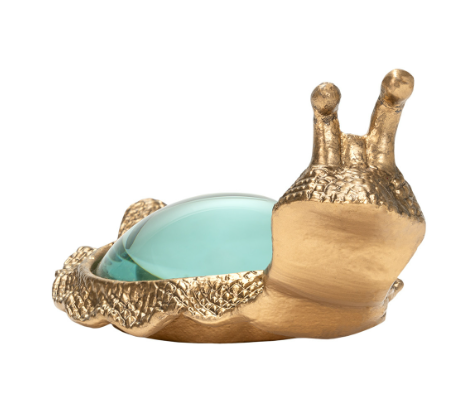 FIGURA DORADA DE CARACOL ALUMINIO Y VIDRIO