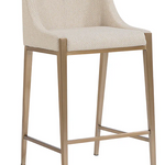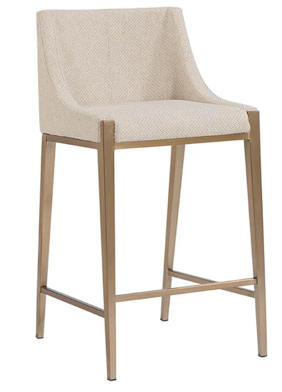 BANCO MEDIO TAPIZADO DE TELA COLOR AVENA CON BASE DE HERRERIA COLOR LATON