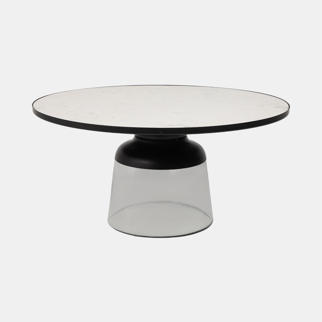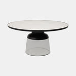 MESA DE CENTRO 34" DIAMETRO, CON BASE DE CRISTAL Y SUPERFICIE DE MARMOL