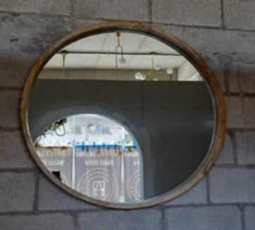 ESPEJO REDONDO GRANDE DE MARCO DE MADERA