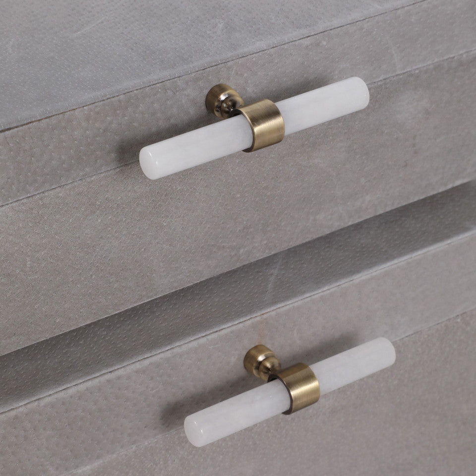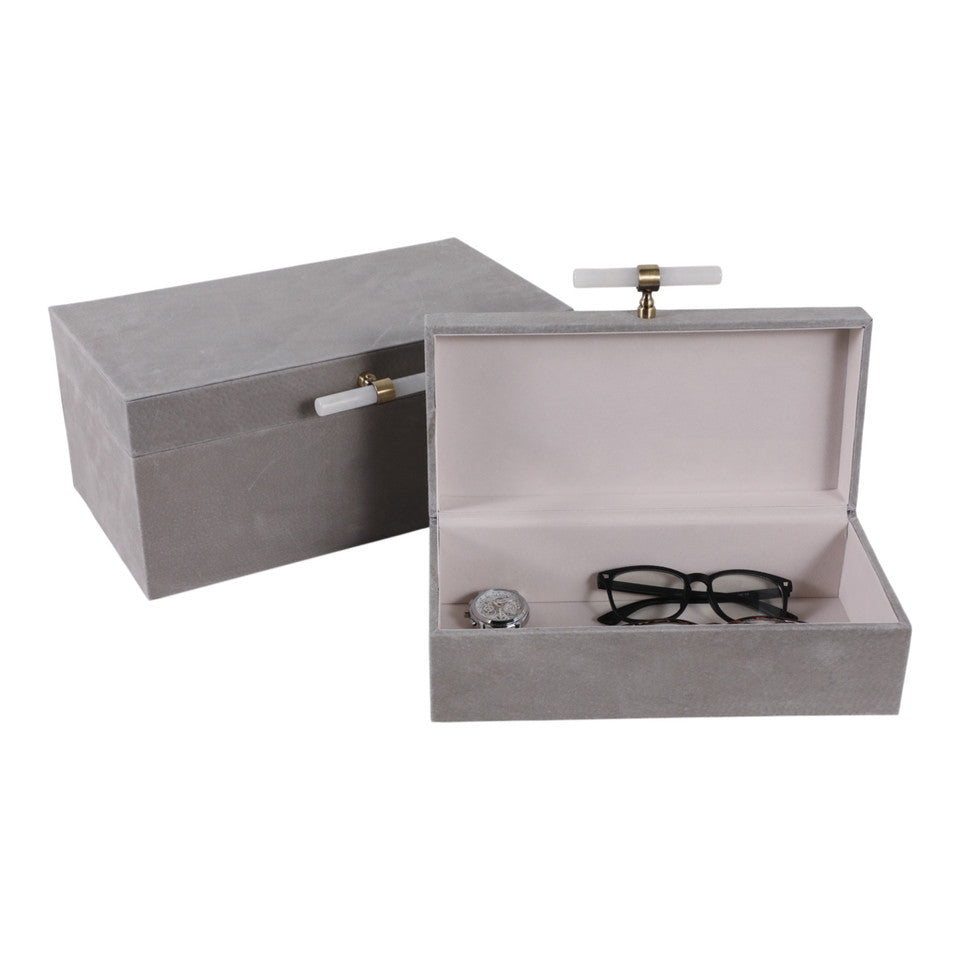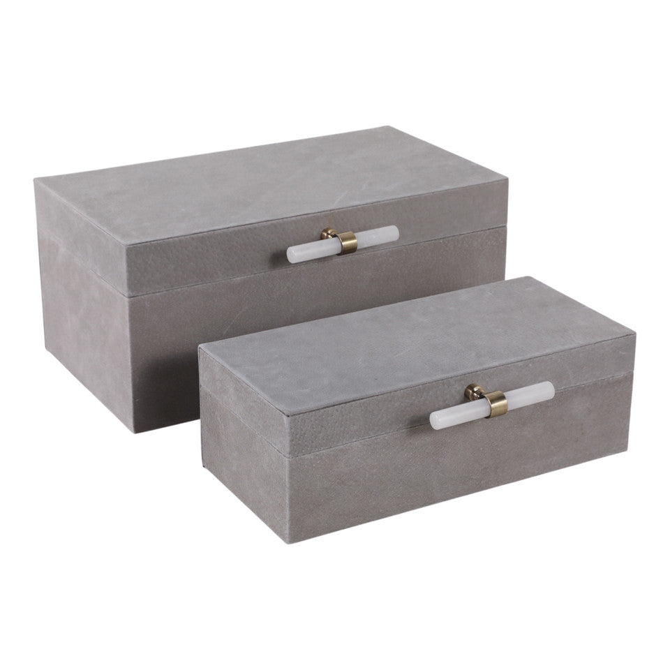 SET DE 2 CAJAS DECORATIVAS COLOR GRIS CON AGARRADERA DE SELENITA BLANCA