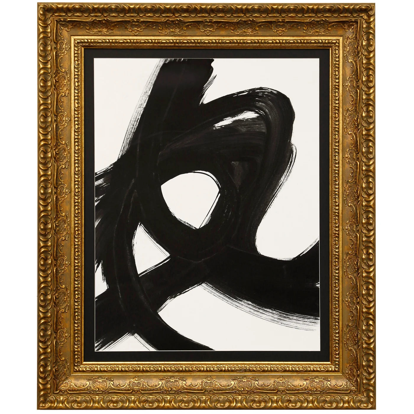 CUADRO GRANDE DE PINTURA CIRULAR NEGRO Y BLANCO CON MARCO DETALLADO EN DORADO