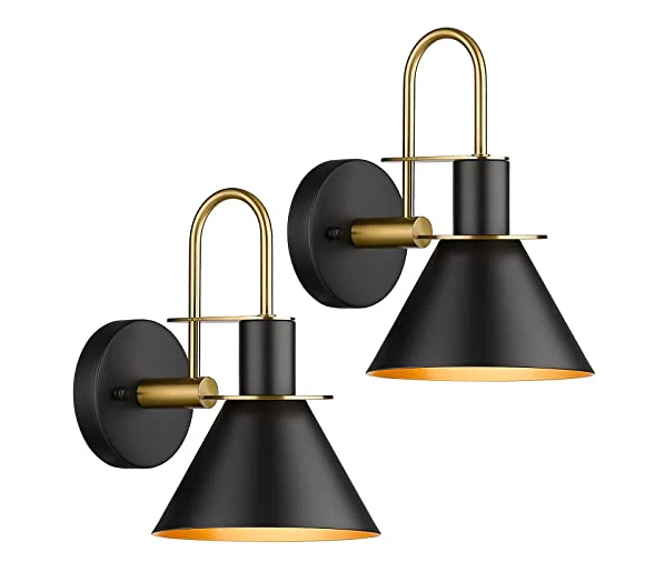 SET DE 2 ARBOTANTES MODERNOS DE UNA LUZ CON ACABO DE NEGRO MATE Y DORADO CON ESTRUCTURA METALICA