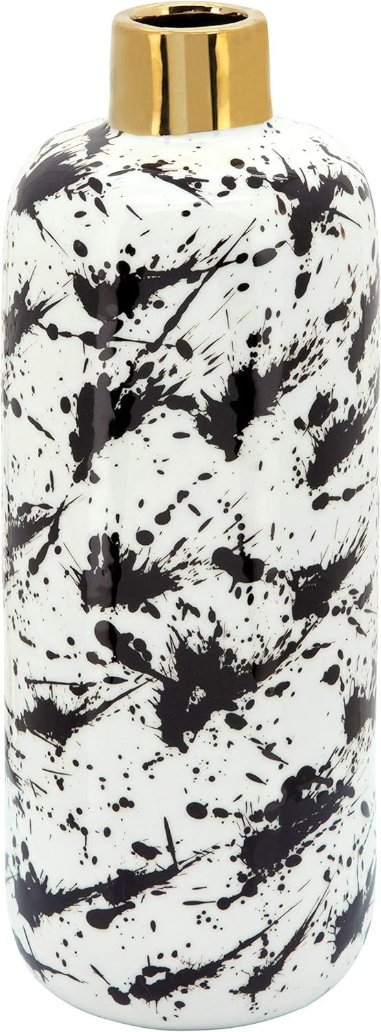 JARRON DE CERAMICA CON DISEÑO DECORATIVO MODERNO COLOR NEGRO Y BLANCO CON ACENTO DORADO