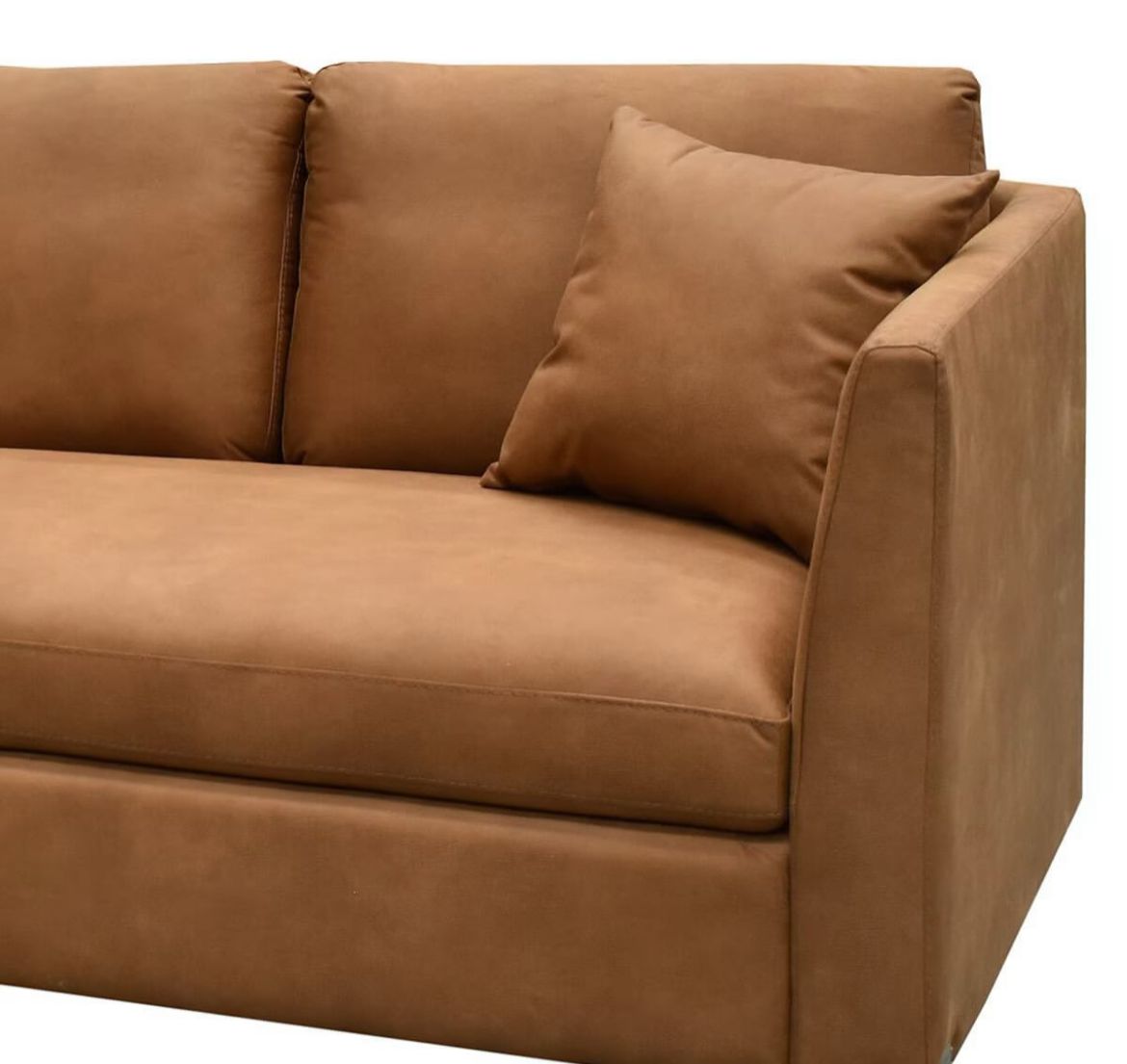 SALA MODULAR CON CHAISE COLOR CAFE TIPO TELA GAMUZA