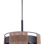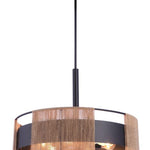 LAMPARA COLGANTE DE 6 BOMBILLAS CON ESTRUCTURA DE METAL COLOR NEGRO ENVUELTA EN CUERDA DE CAÑAMO NATURAL