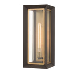 LAMPARA ARBOTANTE CON ESTILO DE CUBO DE METAL COLOR BRONCE Y LATON CON VIDRIO BISELADO TRANSPARENTE