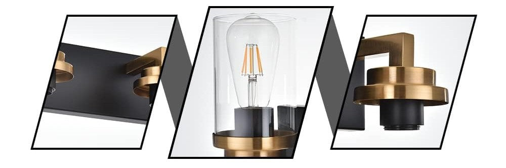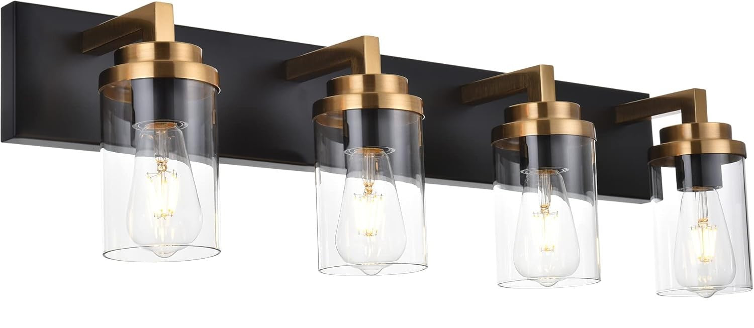 LAMPARA DE PARED MODERNA DE 4 BOMBILLAS CON ESTRUCTURA METALIZADA DE COLOR NEGRO Y DORADO