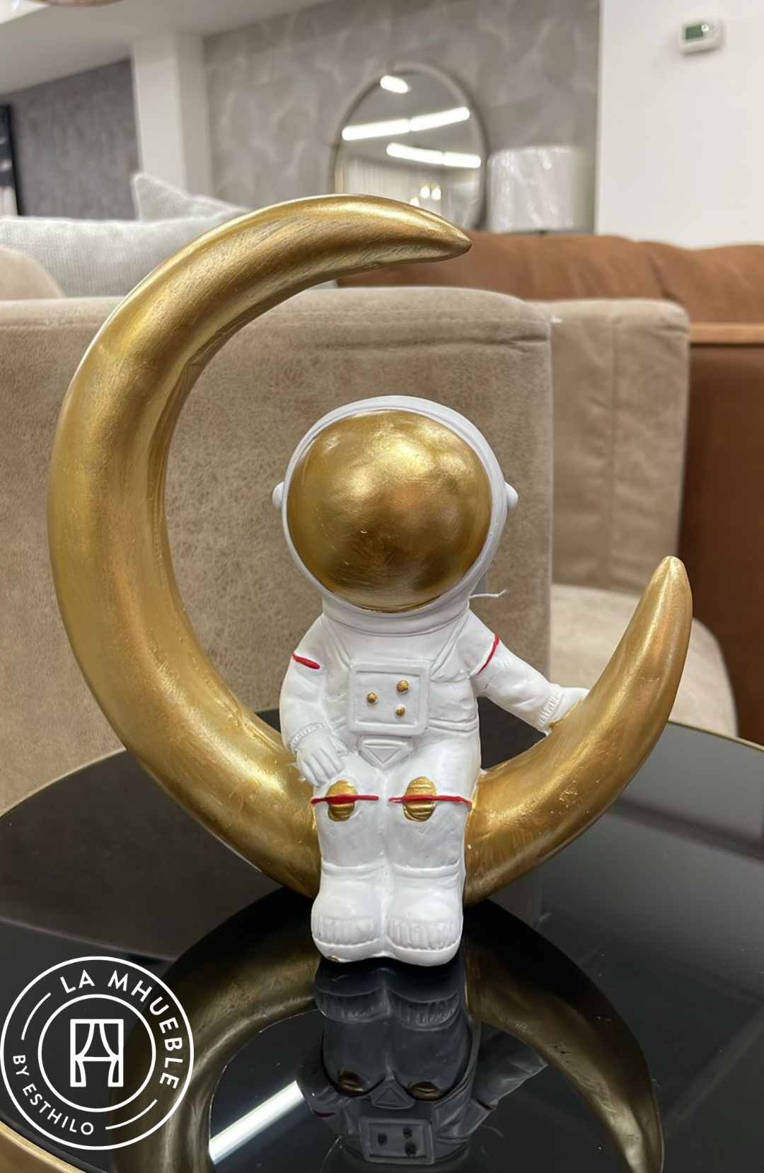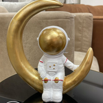 FIGURA DE ASTRONAUTA DECORATIVA SENTADO EN MEDIA LUNA