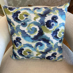 COJIN CON ESTAMPADO DE CIRCULOS CON COLORES DIFUMINADOS DE AZUL Y VERDE