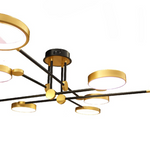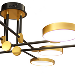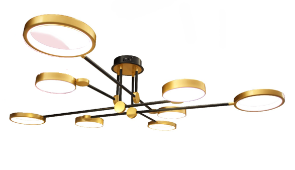 LAMPARA DE TECHO CON CIRCULOS DORADOS Y ESTRUCTURA DE HERRERIA NEGRA