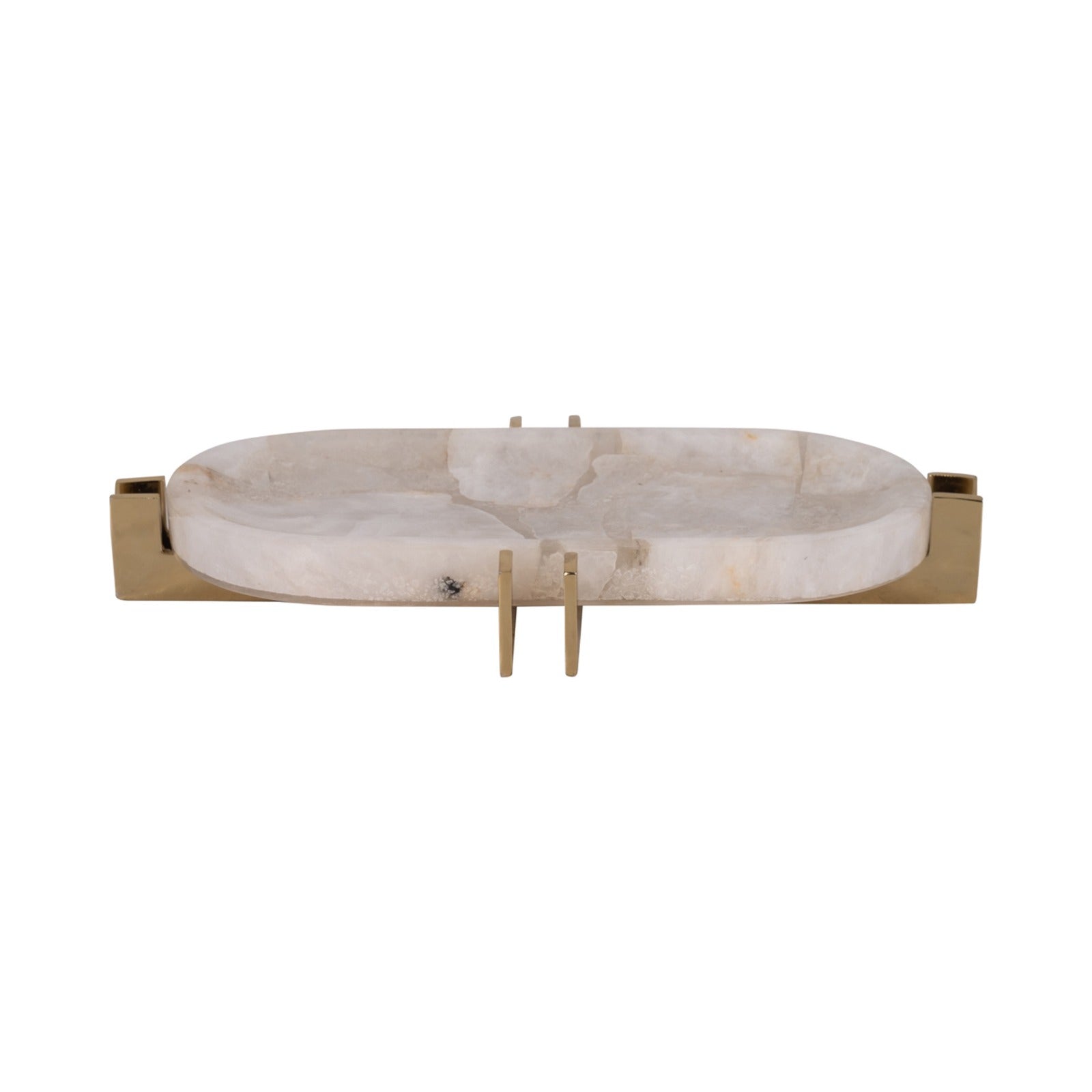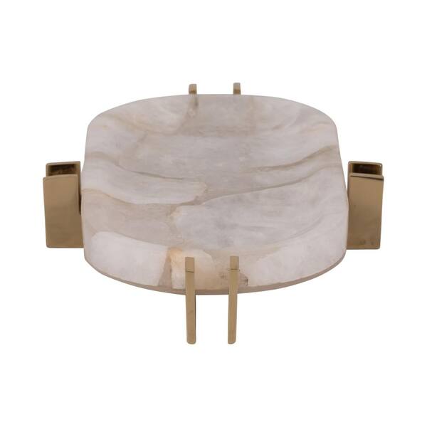 BANDEJA DE PIEDRA DE CUARZO CON BASE DE HERRERIA DORADA