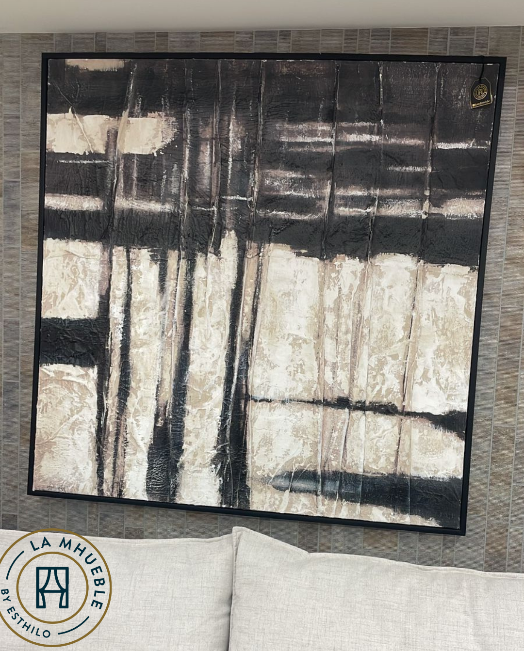 CUADRO DE PINTURA ABSTRACTA NEGRO CON BEIGE