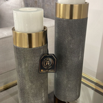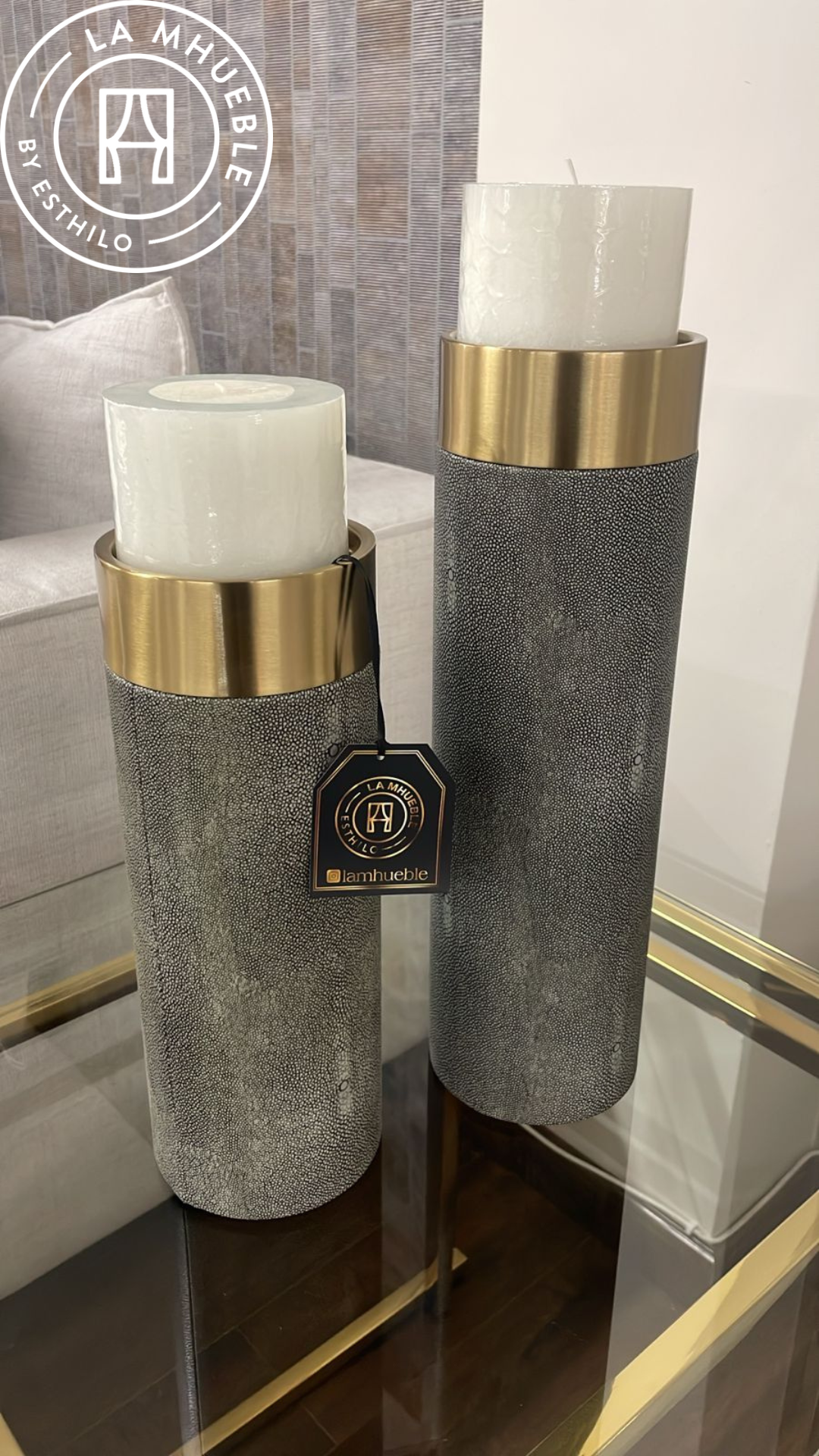 SET DE 2 PORTAVELAS COLOR GRIS CON DORADO
