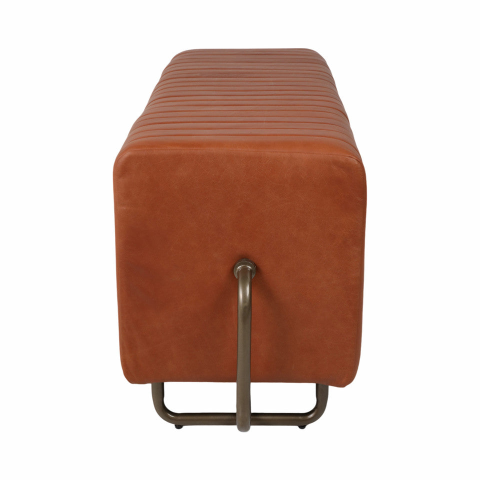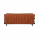 PIE DE CAMA DE PIEL SINTETICA COLOR CAFE CON BASE DE HERRERIA OSCURA