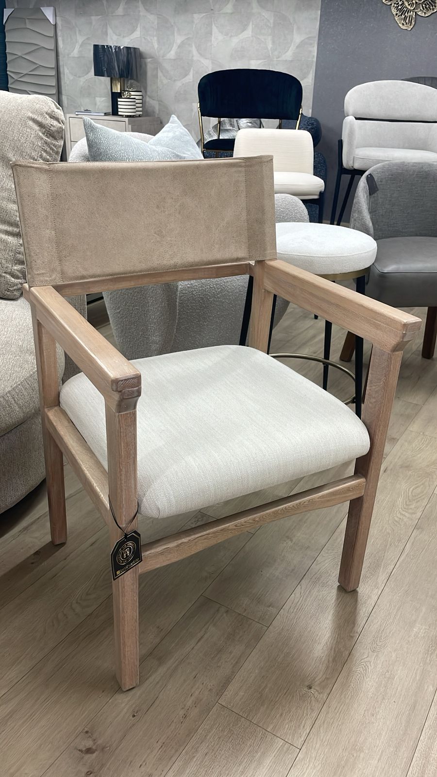SILLA DIRECTOR DE MADERA ROSA MORADA CON ASIENTO Y RESPALDO BEIGE